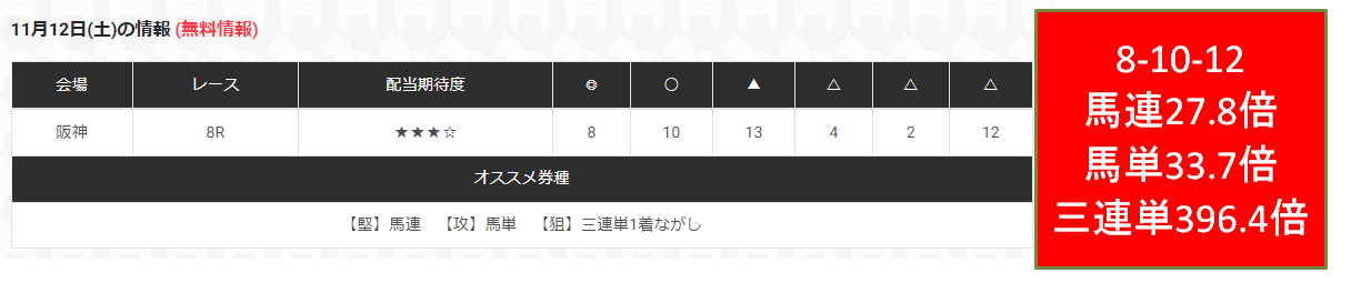 【2022年11月1週目】競馬予想サイト無料情報結果