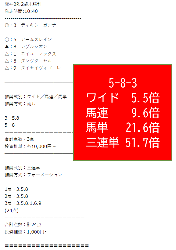 | 万馬券総合研究所 | 5000 | 0 | -5000 | 0 | 1 |