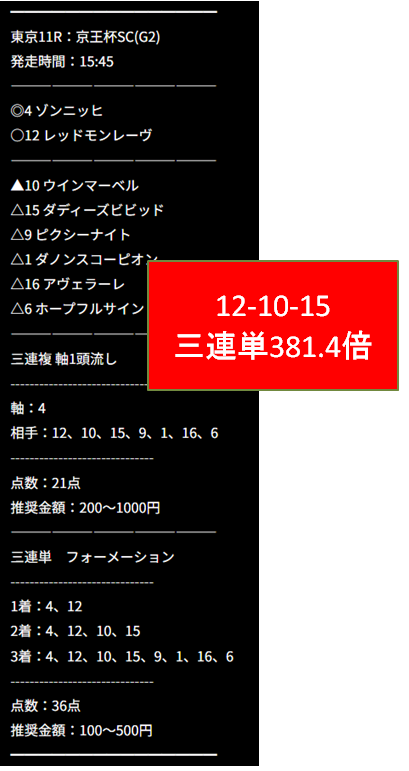 京王杯SC 381.4倍的中! やっぱり地下競馬