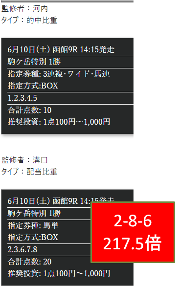これで3週連続的中となりました。4月~5月で4週連続不的中だったときはやっぱり使えないサイトなのか…と思いましたが、盛り返して4~6月2週目までの期間は約170%のプラス回収になっています。