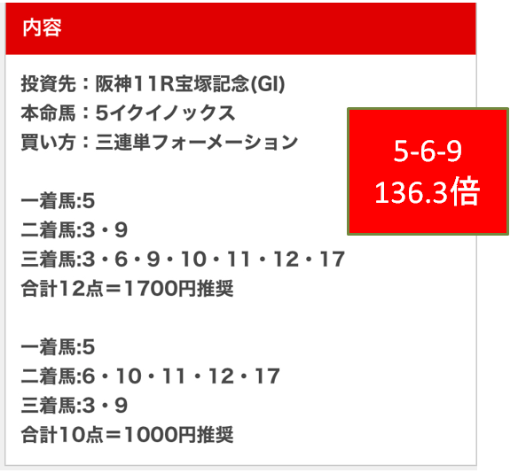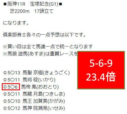 宝塚記念馬連5点で的中! 一点的中倶楽部