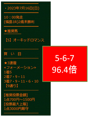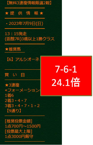 【2023年7月2週目】競馬予想サイト無料情報結果
