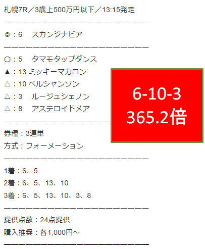 以前「午後のレースの方が結果出ている」なんて分析をしましたが、今月はすべて午前のレースからの提供。