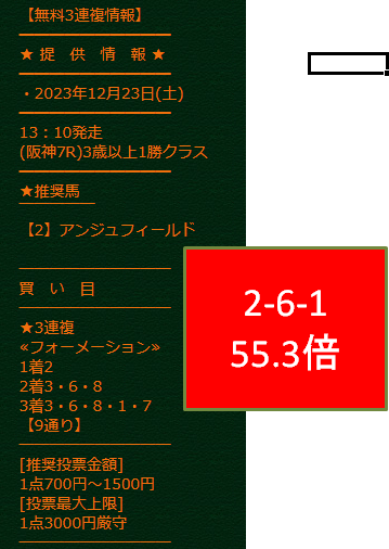 【2023年12月4、5週目】競馬予想サイト無料情報結果