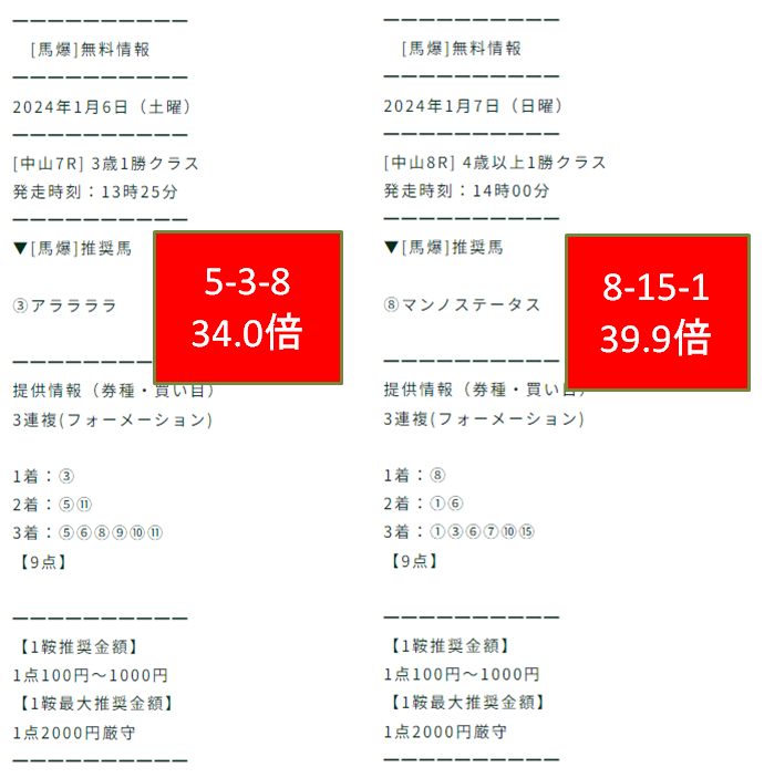 【2024年1月1週目】競馬予想サイト無料情報結果