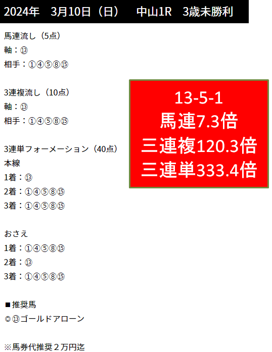 ただ、フォーメーション買いの時点で90%は回収できていたので、そこまで恩恵があったかと言われると微妙な気もします。