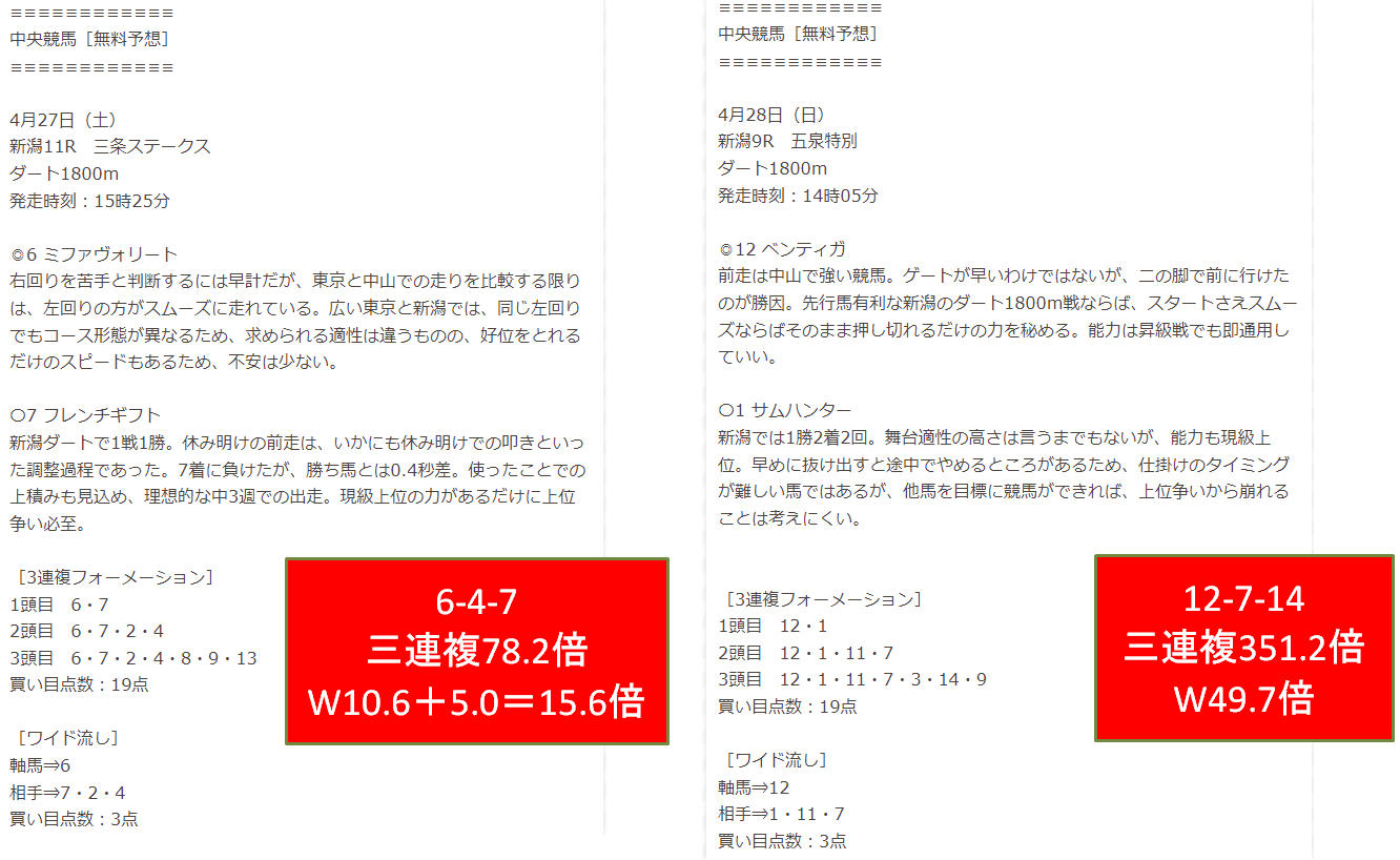 ただ、回収率は計算していませんが実質無料のポイント情報の方で万馬券が出ていたので、今月は買うならそちらでした。