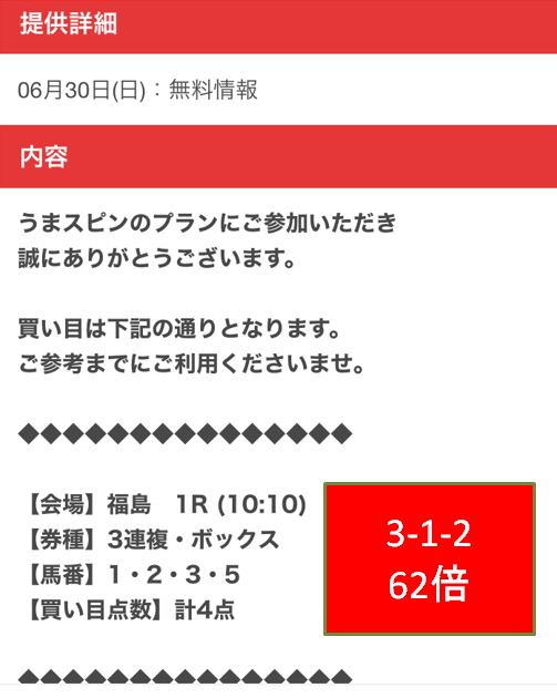 ただそれでも250%前後はあるでしょう。6/30(日)の三連複4点で62倍がなければマイナスだったのですが、一気に巻き返しに成功しました。