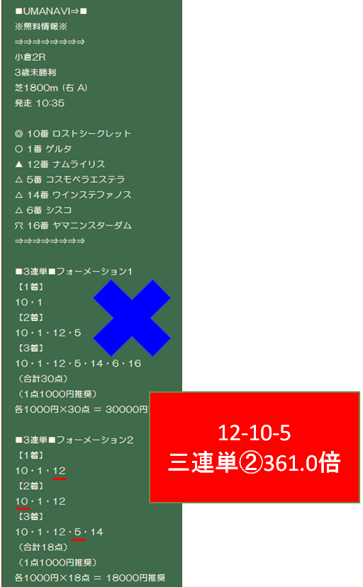 - うまサプリ:土曜新潟2Rで三連複80.8倍を的中。最終週でプラス収支に持って行った。