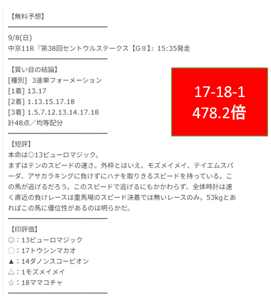 第2位は原点。こちらは日曜中京11RセントウルSにて三連単48点で478.2倍の高配当を的中させています。