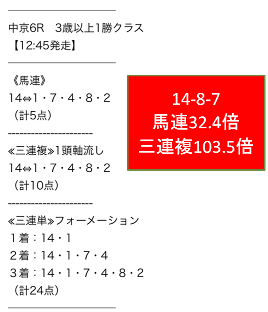 - 情報競馬マスターズ:土曜中京8Rで三連単120.5倍を含む全券種的中。3か月連続プラス収支に向け好発進
