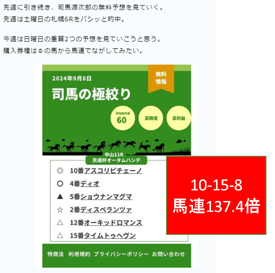 【2024年9月2週目】競馬予想サイト無料情報結果