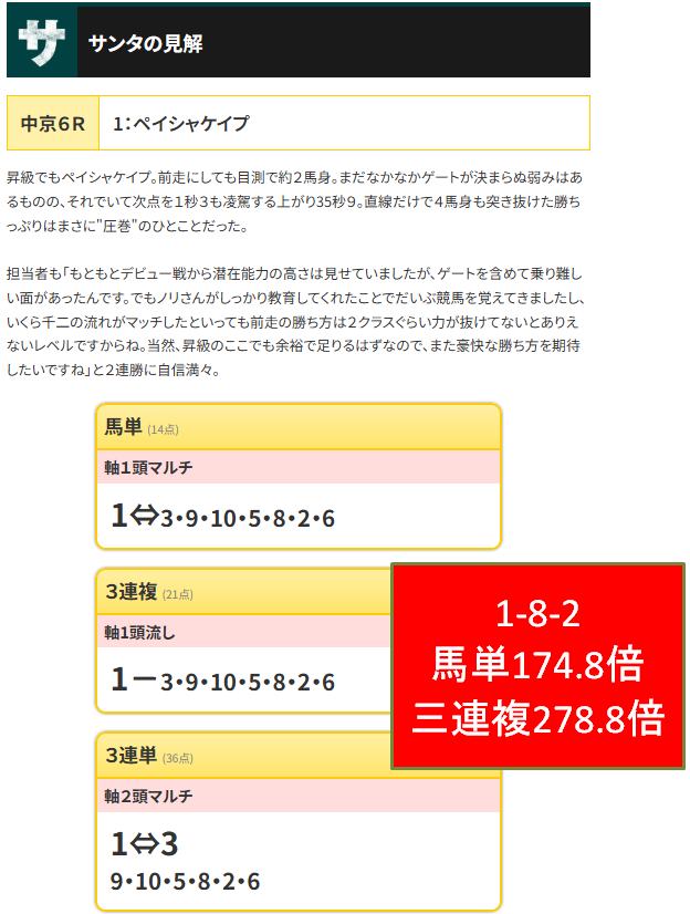 - 競馬セブン:日曜中山6Rで三連単42点177倍含む三券種的中